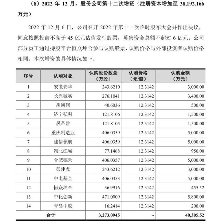 《恒坤新材的招股书》显示,2022年12月6日,恒坤新材召开股东大会并作出决议,同意按照投前不高于45亿元估值发行股票,募集资金总额不超过6亿元。其中,彭建虎认购243.62万股,认购价格12.31元/股,认购金额3000万元。
